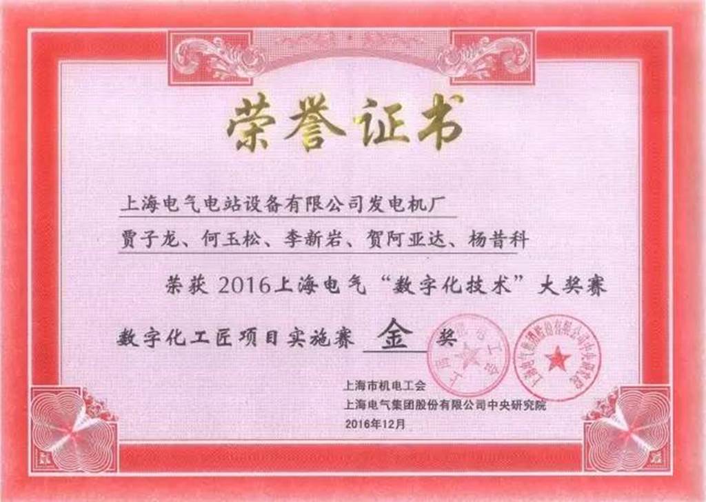 上海發(fā)電機廠(chǎng)蟬聯(lián)上海電氣“數字化技術(shù)”大獎賽金獎